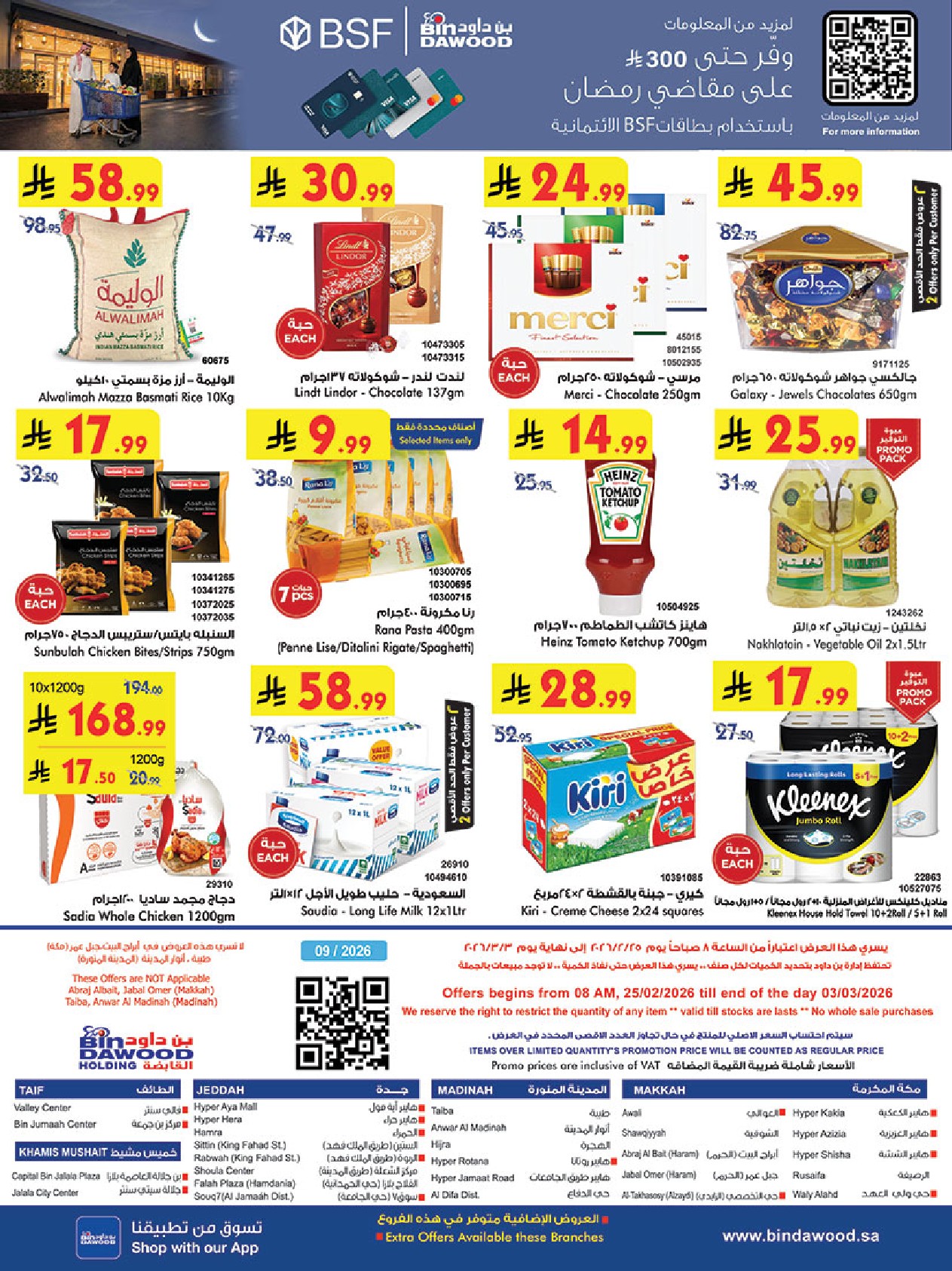 عروض بن داود الجنوبية الاسبوعية 25 فبراير 2026 -8\9\1447 عروض شهر رمضان المباركلا , استمتعوا بـ عروض رمضان المميزة على كل مستلزمات الشهر الفضيل! تخفيضات مذهلة على الأغذية والمشروبات والحلويات تجعل تسوقكم أسهل وأوفر.