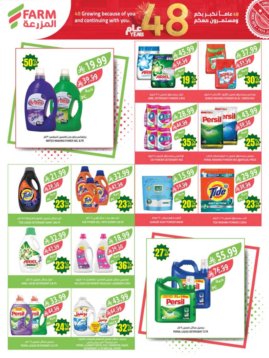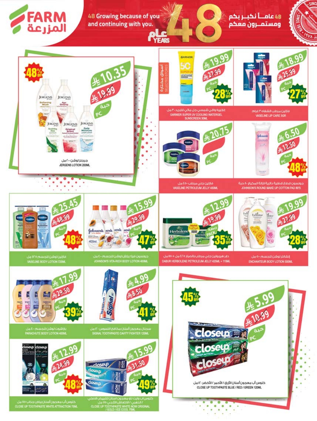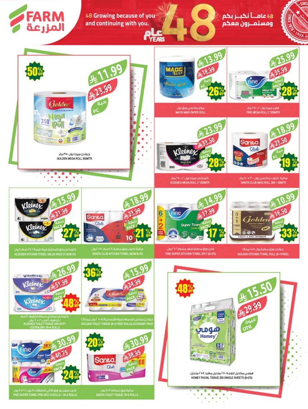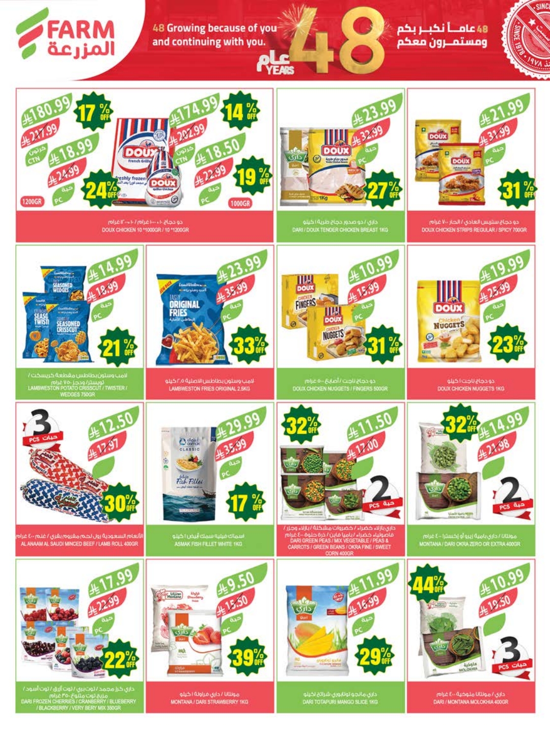 عروض المزرعة الشرقية والرياض بصفحة واحدة 22 أبريل 2026 الموافق 5 ذو القعدة 1447 (48) عام نكبر بكم