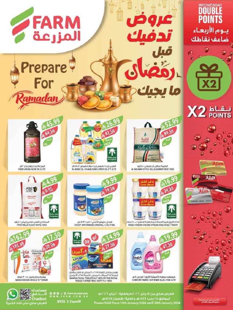 عروض المزرعة الجنوبية الأسبوعية 14 يناير 2026 _ 25 رجب 1447 عروض تدفيك قبل رمضان كل اللي تحتاجه لشهر الخير بأقل الأسعار تبدأ سنة جديدة مليئة بالفرص… وفرص التوفير هذه المرة أكبر من أي وقت مضى!