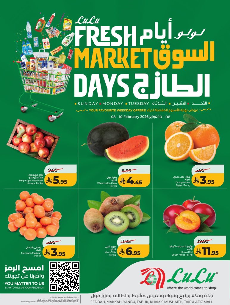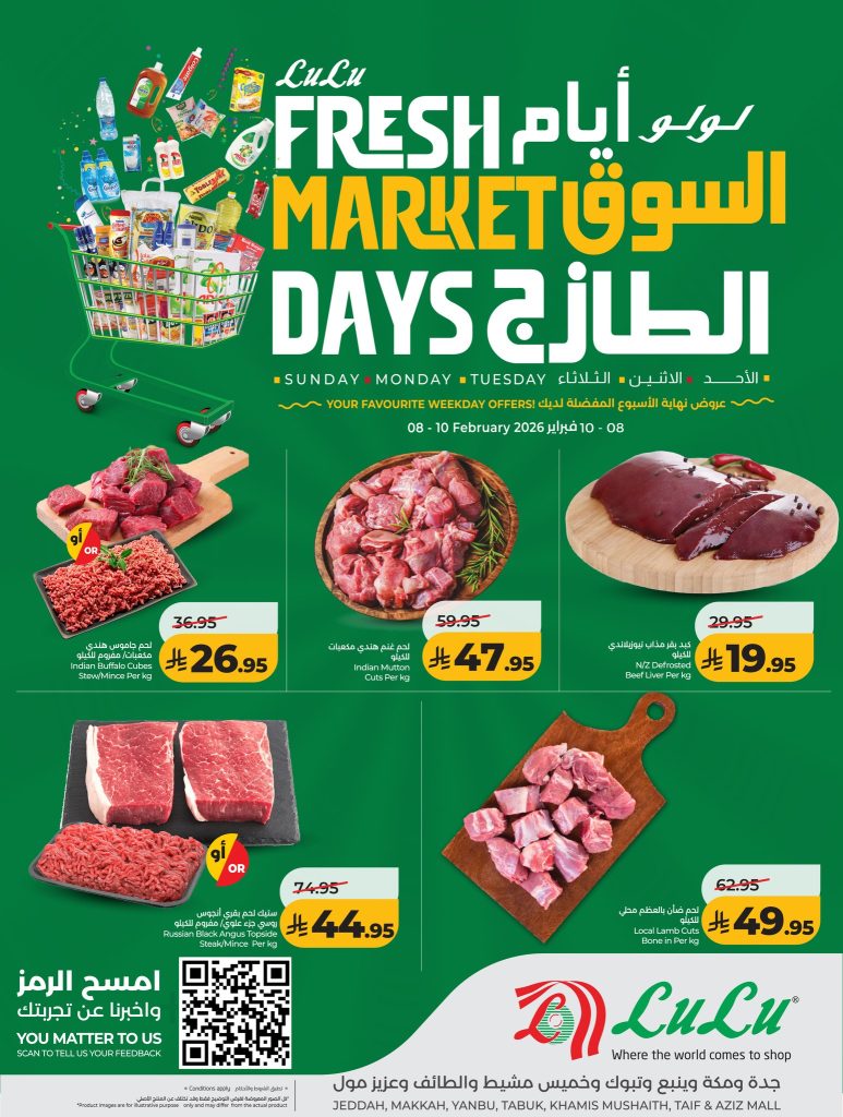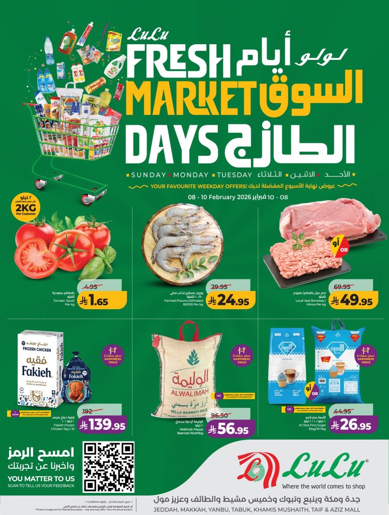 عروض لولو جدة وتبوك اليوم 8 فبراير 2026 _ 20 شعبان 1447 عروض السوق الطازج & العرض الاسبوعي