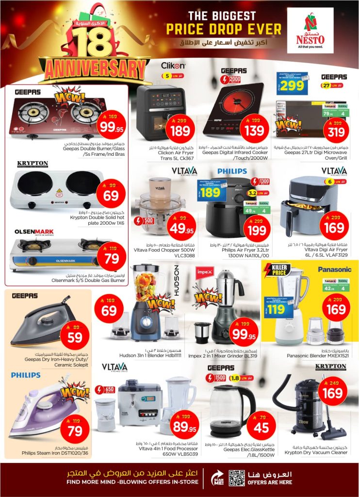 عروض نستو الرياض والقصيم لهذا الأسبوع 12 نوفمبر 2025 _ 21 جمادى الأولى 1447 توفير الذكرى 18 أقوى العروض عروض نوفمبر الاستثنائية: شهر الخصومات الكبرى  انطلق شهر نوفمبر ، وانطلق معه موسم العروض الذي ينتظره الجميع! بمناسبة قدوم فصل الخريف،، جهزنا لك تخفيضات لم تخطر على بالك!