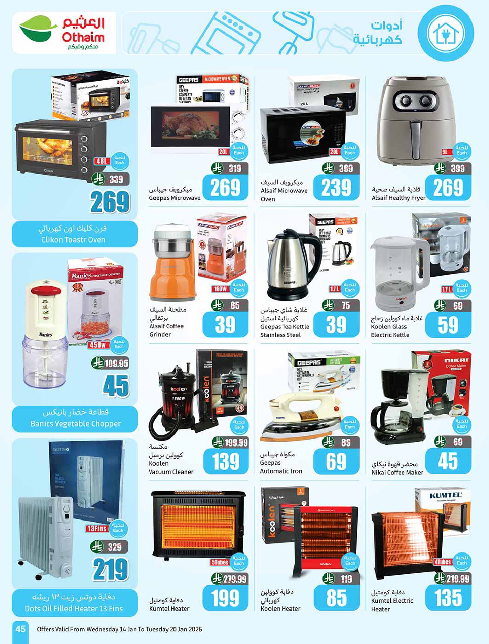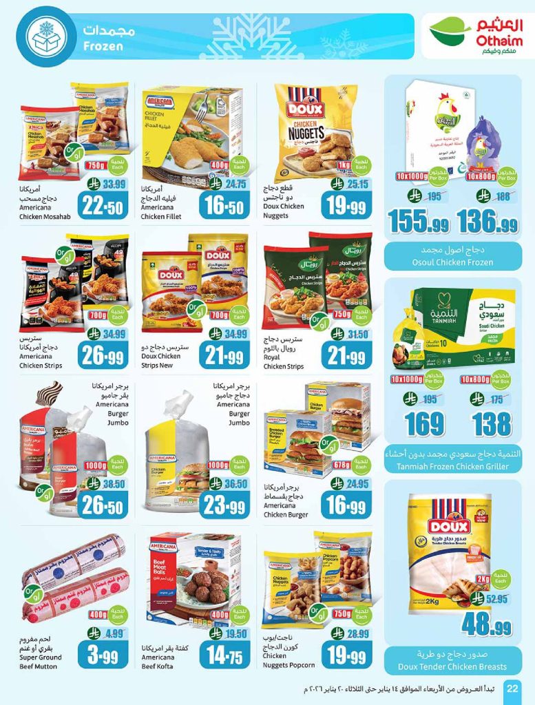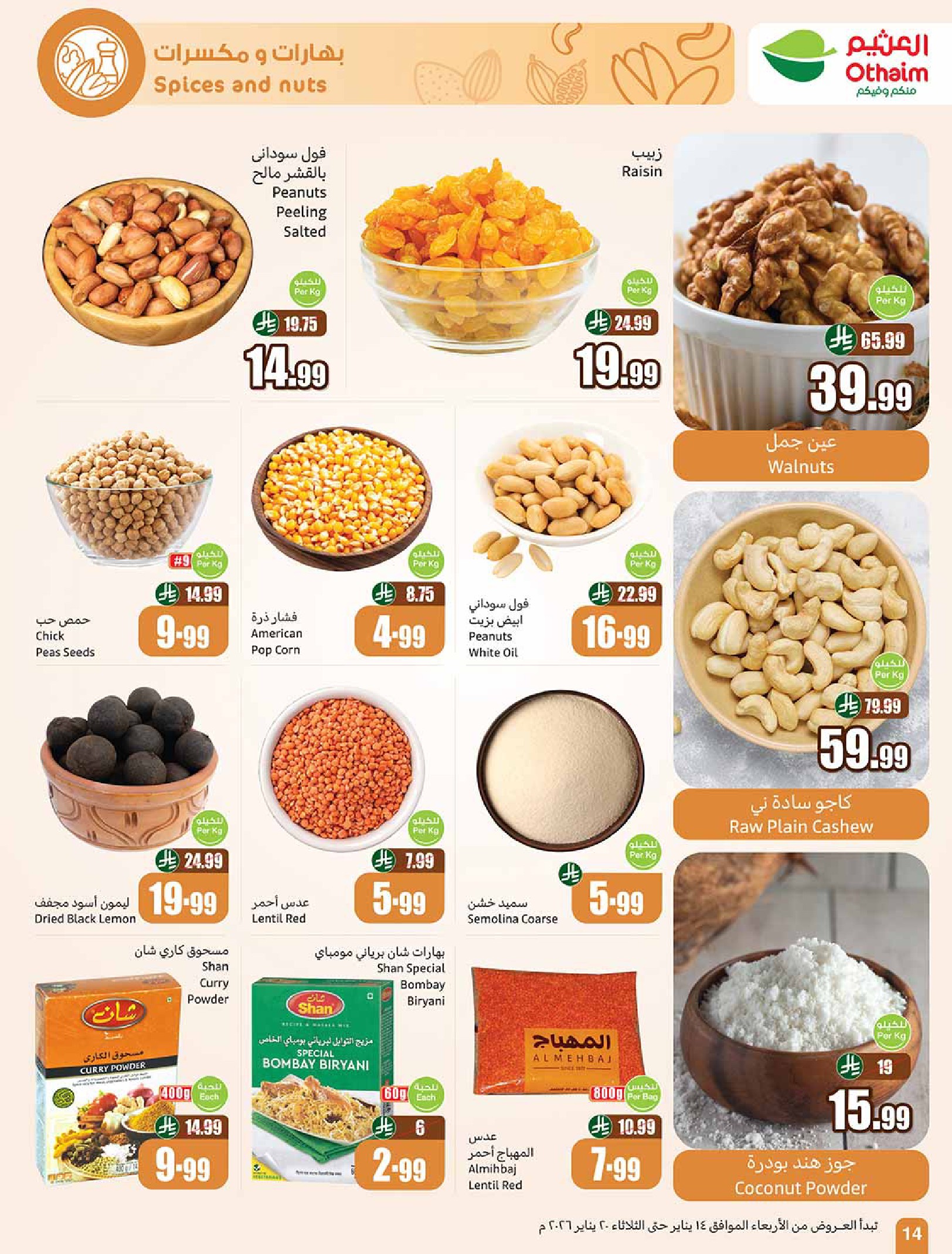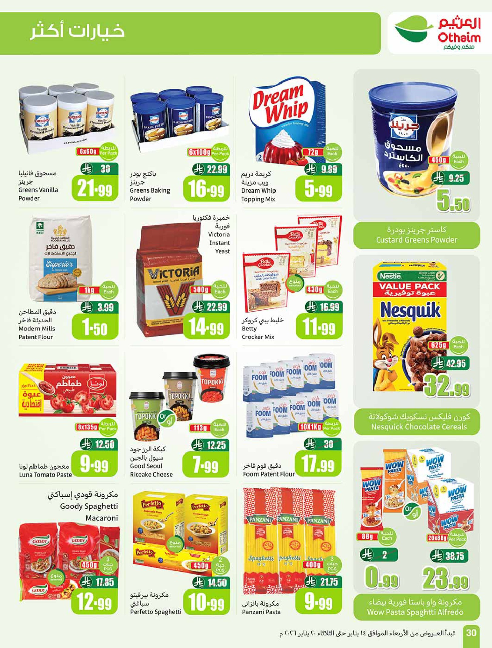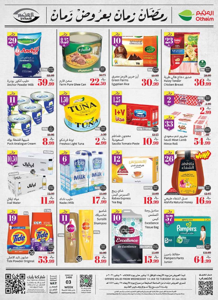 عروض العثيم الأسبوعية 14 يناير 2026 _ 25 رجب 1447 رمضان زمان بعروض زمان كل اللي تحتاجه لشهر الخير بأقل الأسعار تبدأ سنة جديدة مليئة بالفرص… وفرص التوفير هذه المرة أكبر من أي وقت مضى! فصل الشتاء في أوجه، ومعه أطلقنا لك عروضًا قوية تساعدك تبدأ العام بأسلوب ذكي وميزانية أذكى.