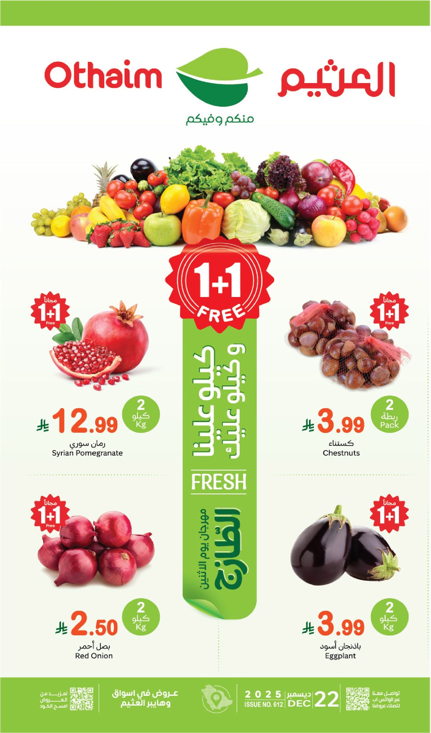 عروض العثيم الاثنين الطازج 22 ديسمبر 2025 _ 2 رجب 1447 كيلو + كيلو مجاناً & العروض الأسبوعية
