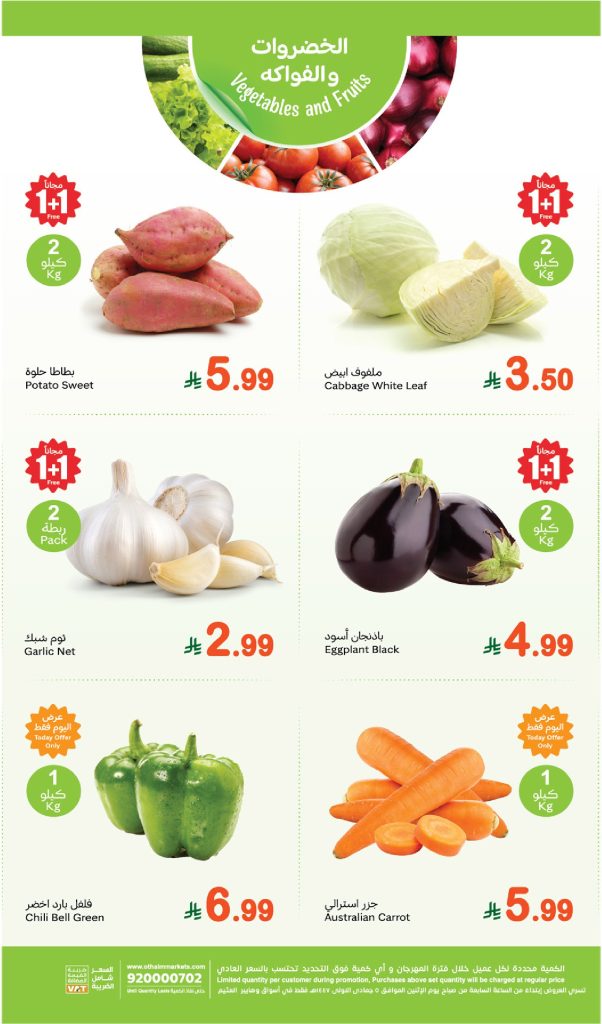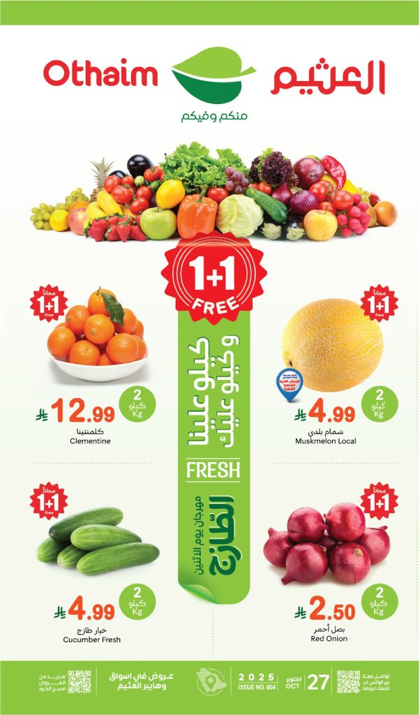 عروض العثيم الخضار الطازج اليوم 27 أكتوبر 2025 _ 5 جمادى الأولى 1447 كيلو + كيلو مجاناً & العروض الأسبوعية