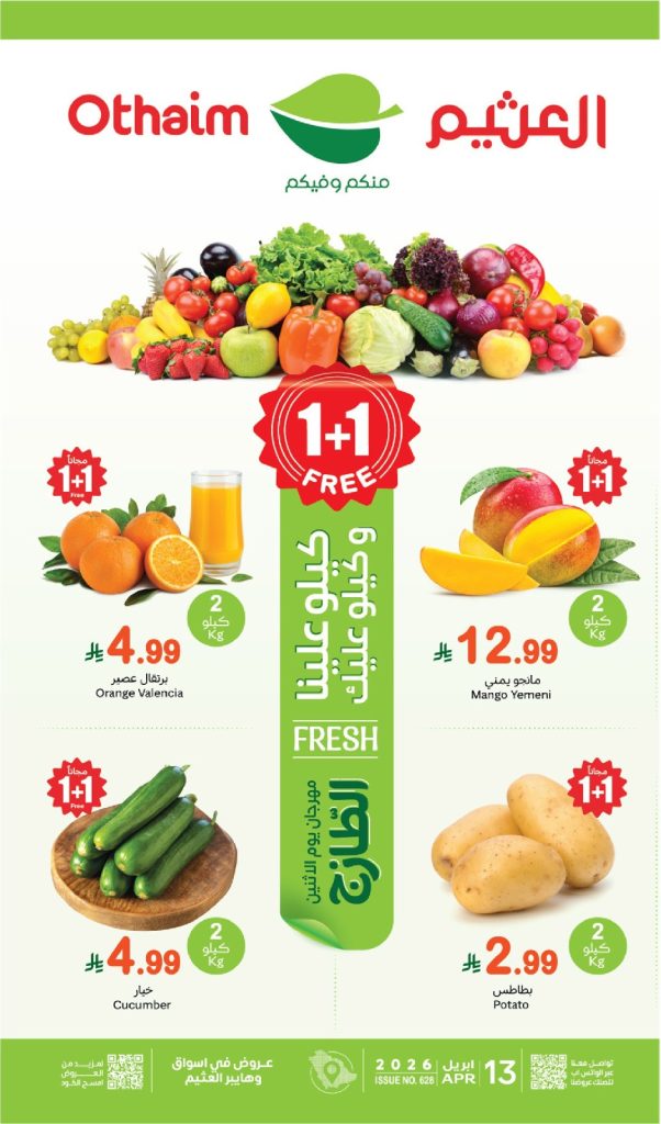عروض العثيم الطازجة 13 أبريل 2026 الموافق 25 شوال 1447 كيلو عليك وكيلو علينا