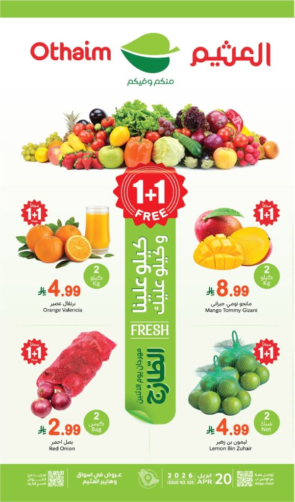 عروض العثيم الطازج 20أبريل 2026 الموافق 2 ذو القعدة 1447 كيلو عليك وكيلو علينا