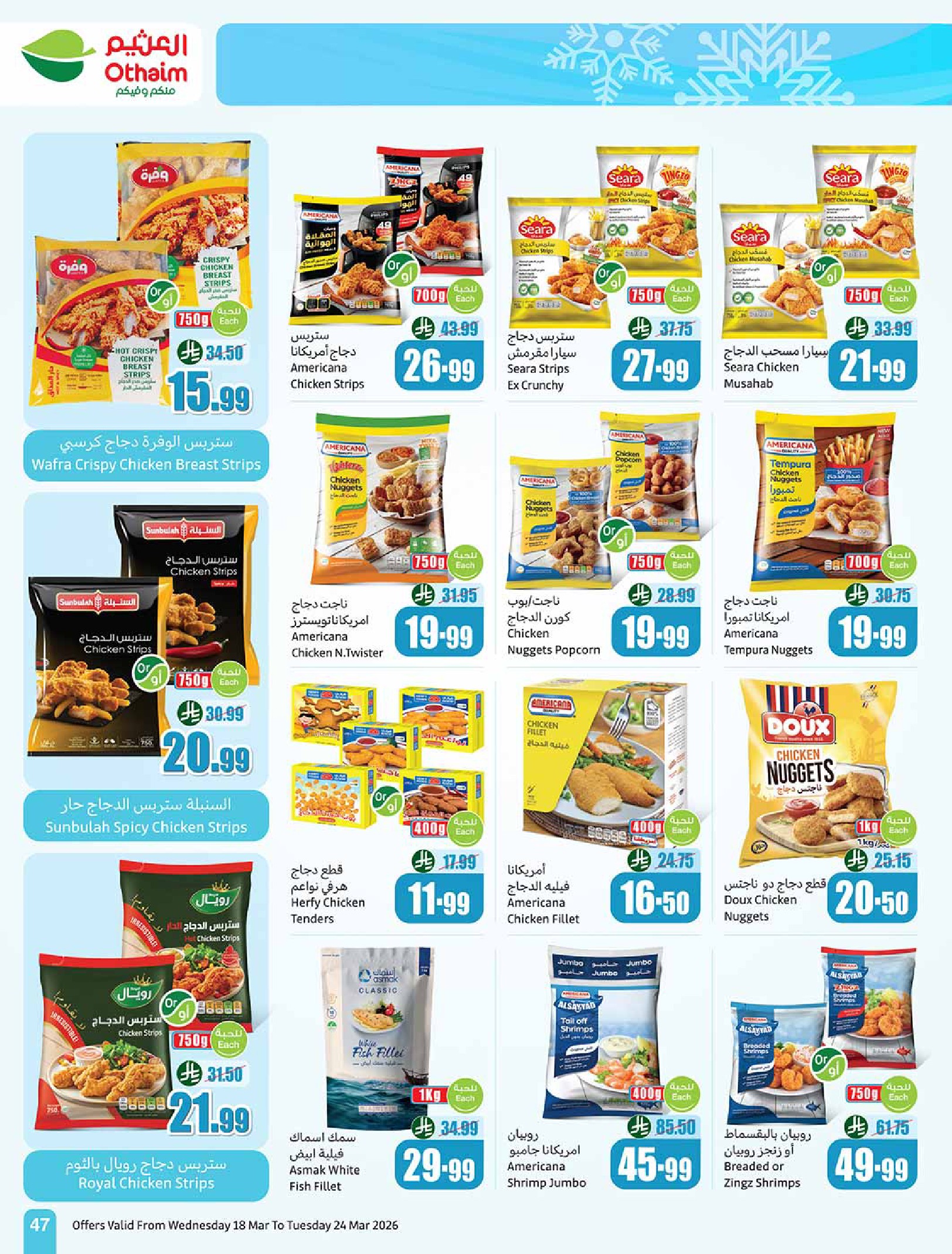 عروض العثيم بصفحة واحدة 18 مارس 2026 الموافق 29 رمضان 1447 فرحة العيد فرحة العيد العيد فرحة، وفرحتنا ما تكمل إلا بتوفيركم! استعد لطبخات العيد وجهز مطبخك بأفضل الأسعار. سوينا لكم باقات توفيرية على المواد الأساسية (أرز، سكر، دقيق، معلبات) وأكثر من عروض على المواد الكهربائية وغيرها