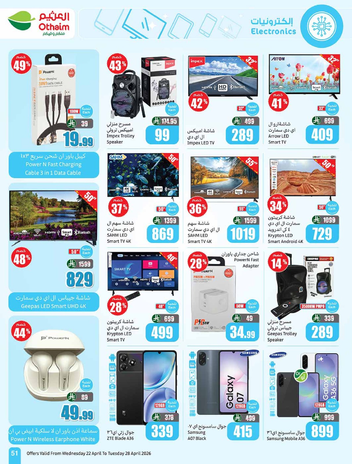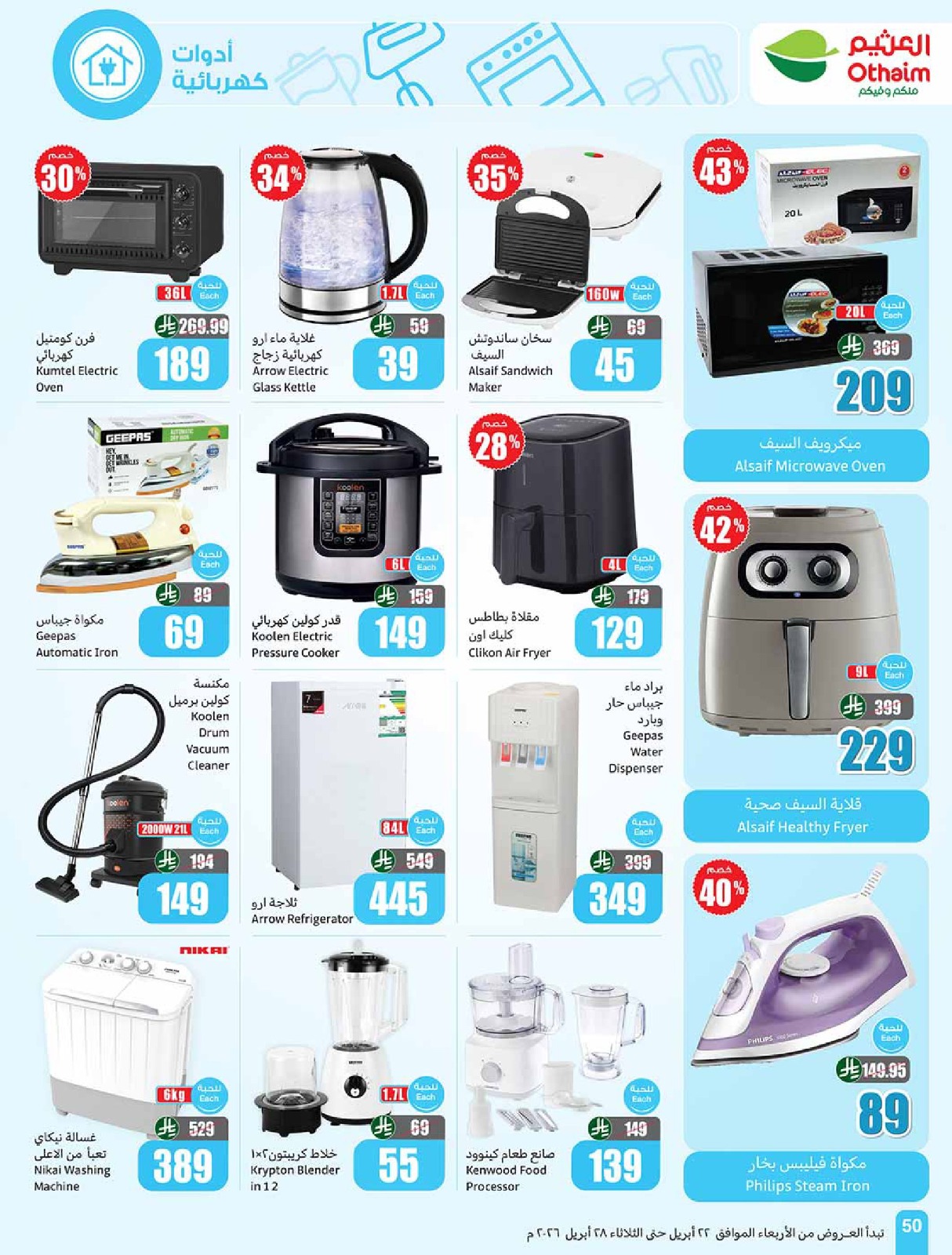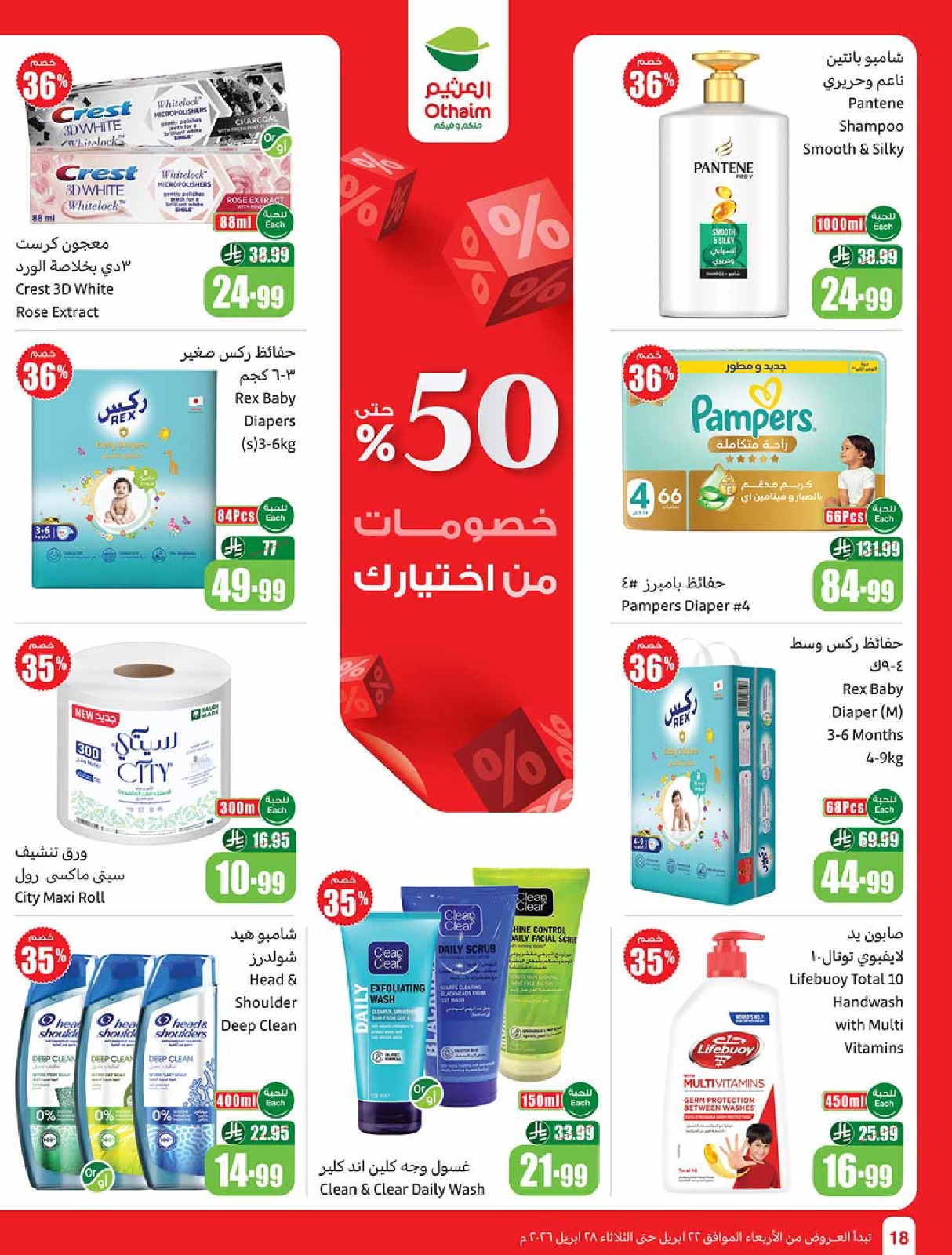 عروض العثيم بصفحة واحدة 22 أبريل 2026 الموافق 5 ذو القعدة 1447 خصومات تصل الى 50%