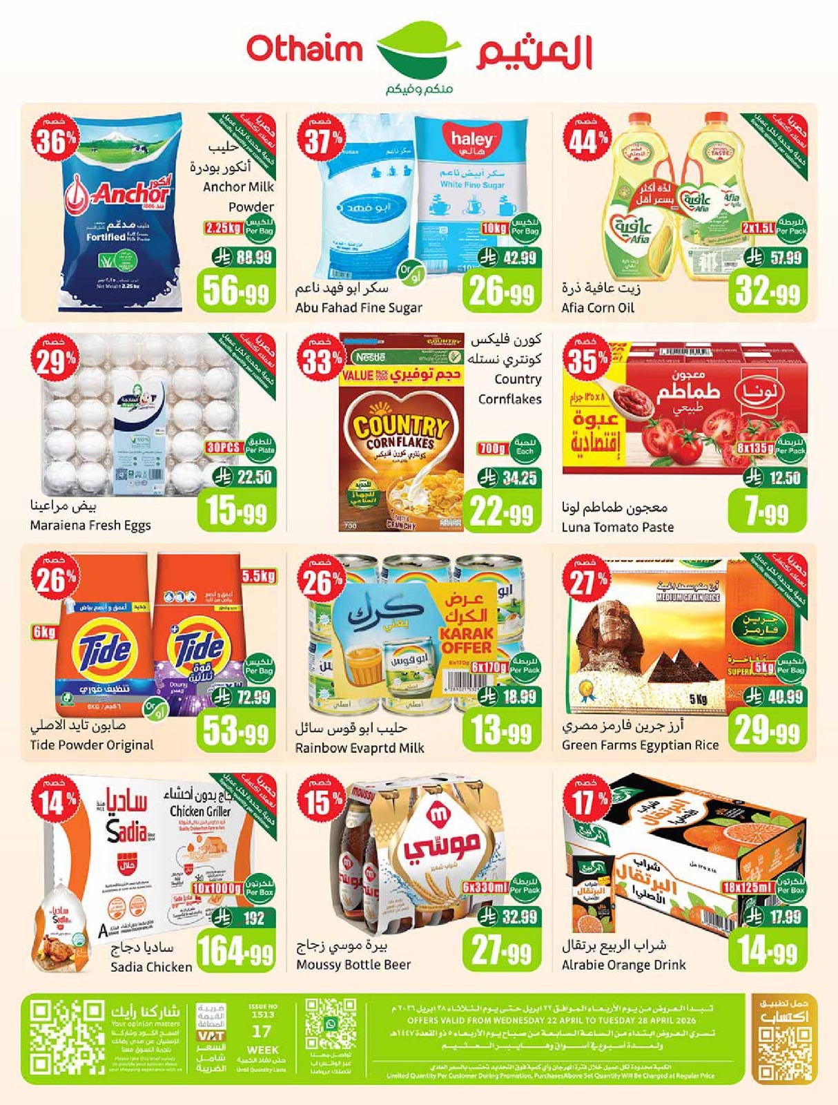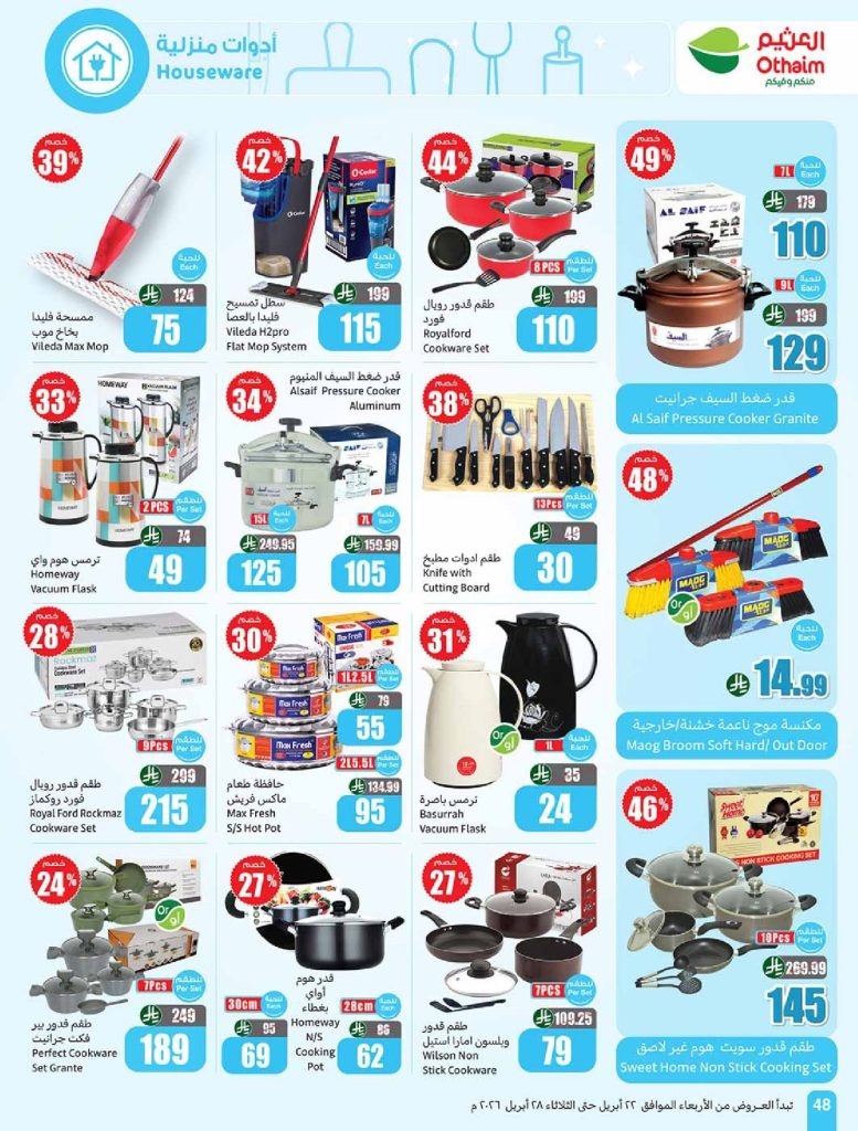 عروض العثيم بصفحة واحدة 22 أبريل 2026 الموافق 5 ذو القعدة 1447 خصومات تصل الى 50%  ، أسبوع “عروض بلاش” بدأ، والخصومات هالمرة حقيقية وتدخل القلب قبل الجيب: