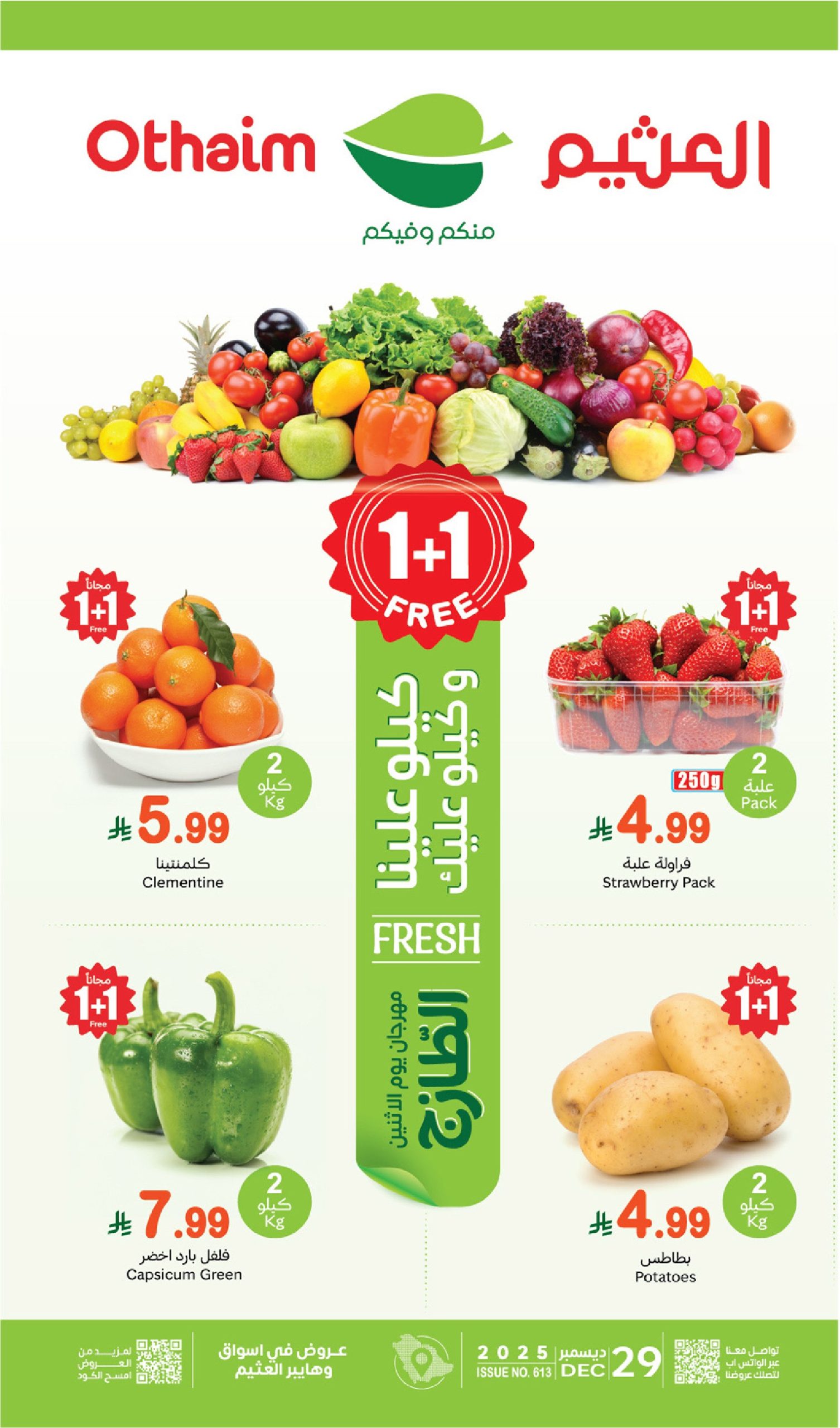 عروض العثيم مهرجان الخضار الطازج اليوم 29 ديسمبر 2025 _ 9 رجب 1447 كيلو + كيلو مجاناً + عروض الأسبوع