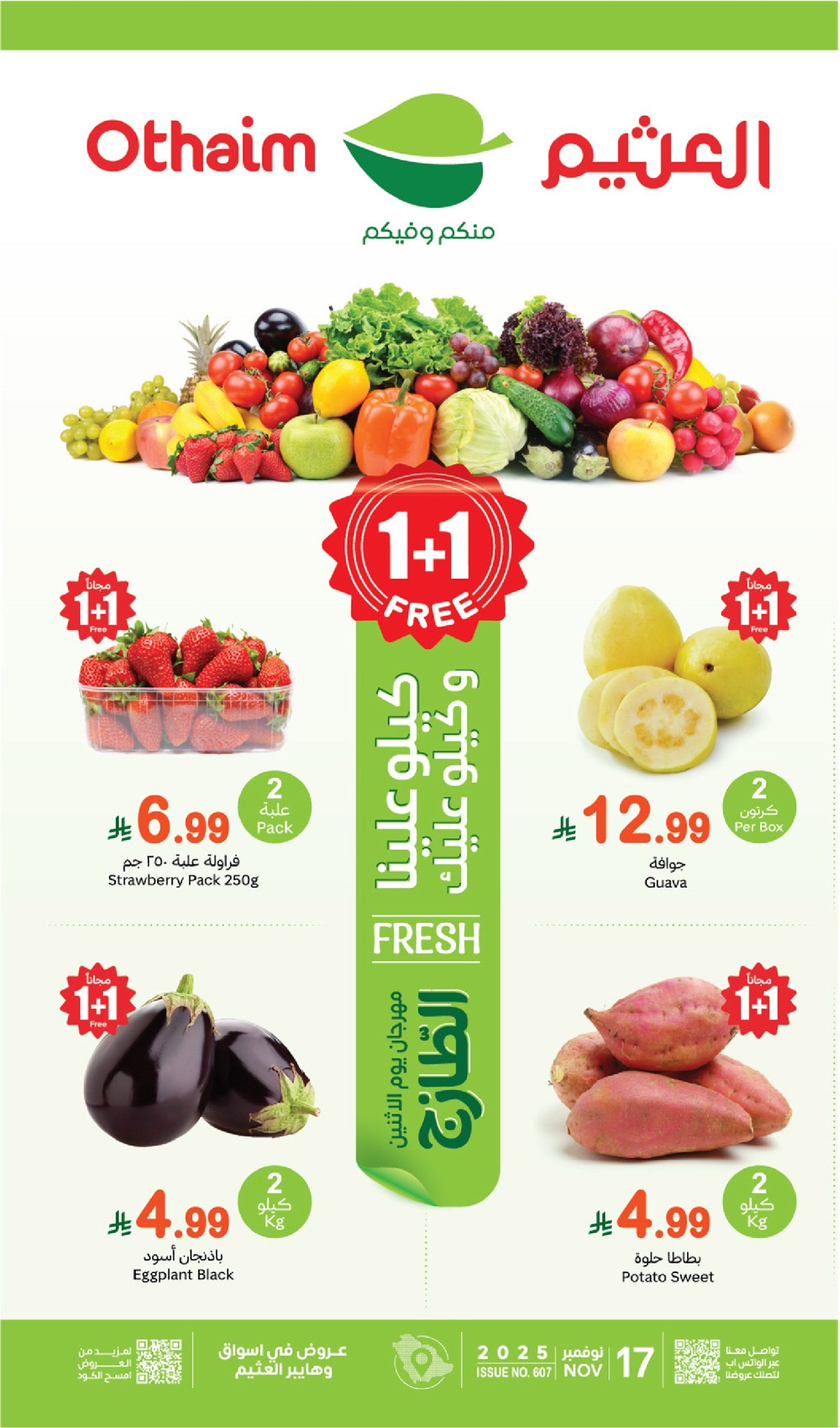 عروض العثيم مهرجان الخضار 17 نوفمبر 2025 _ 26 جمادى الأولى 1447 كل يوم اثنين بنصف السعر + عروض الأسبوع