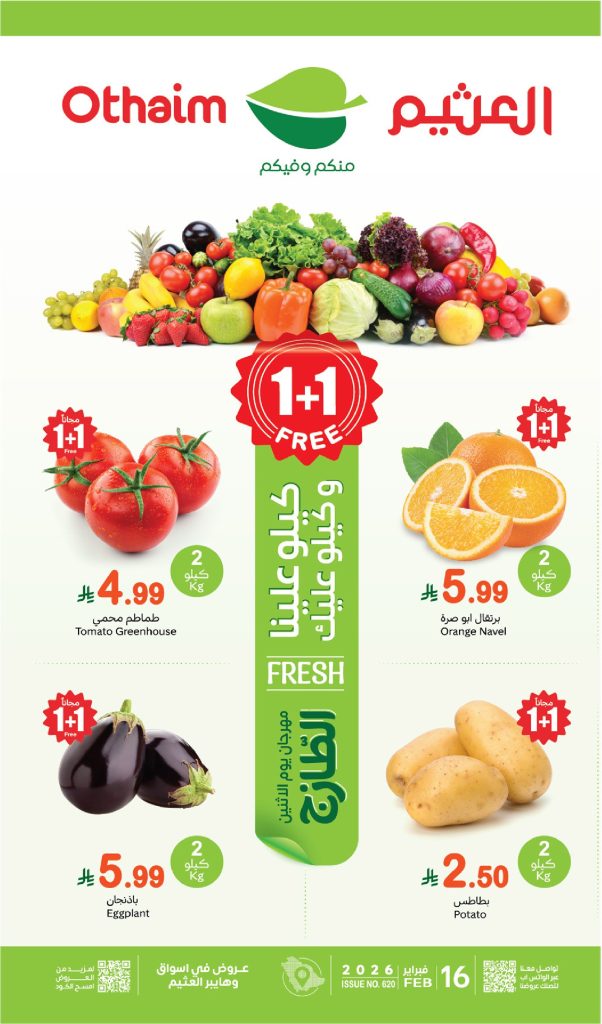 عروض العثيم مهرجان الطازج اليوم 12 فبراير 2026 _ 28 شعبان 1447 كيلو + كيلو مجاناً & العرض الأسبوعي