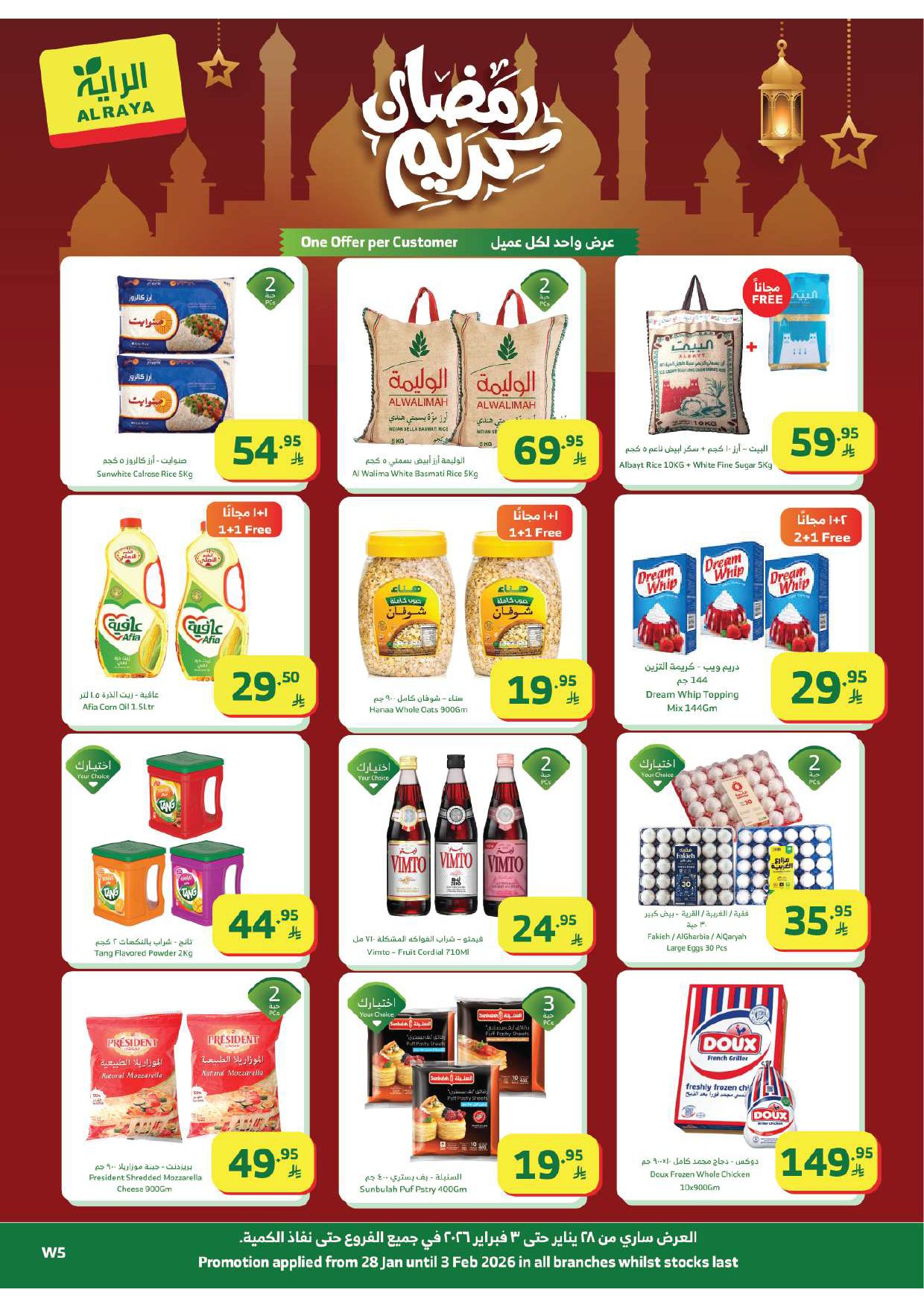 عروض الراية الأسبوعية 28 يناير 2026 _ 9 شعبان 1447 عروض الخير في شهر الخير سنة جديدة مليئة بالفرص… وفرص التوفير هذه المرة أكبر من أي وقت مضى! فصل الشتاء في أوجه، ومعه أطلقنا لك عروضًا قوية تساعدك تبدأ العام بأسلوب ذكي وميزانية أذكى.