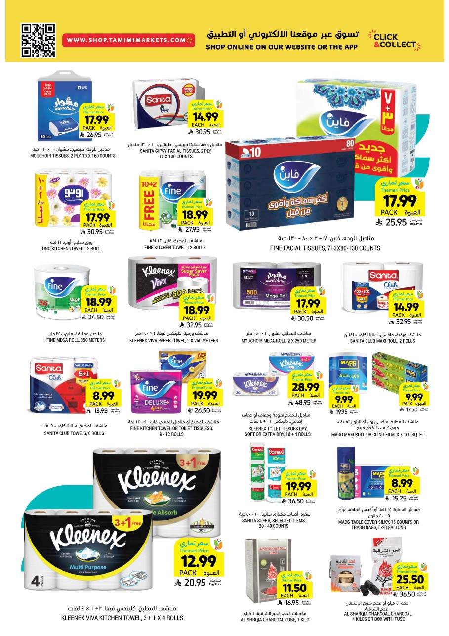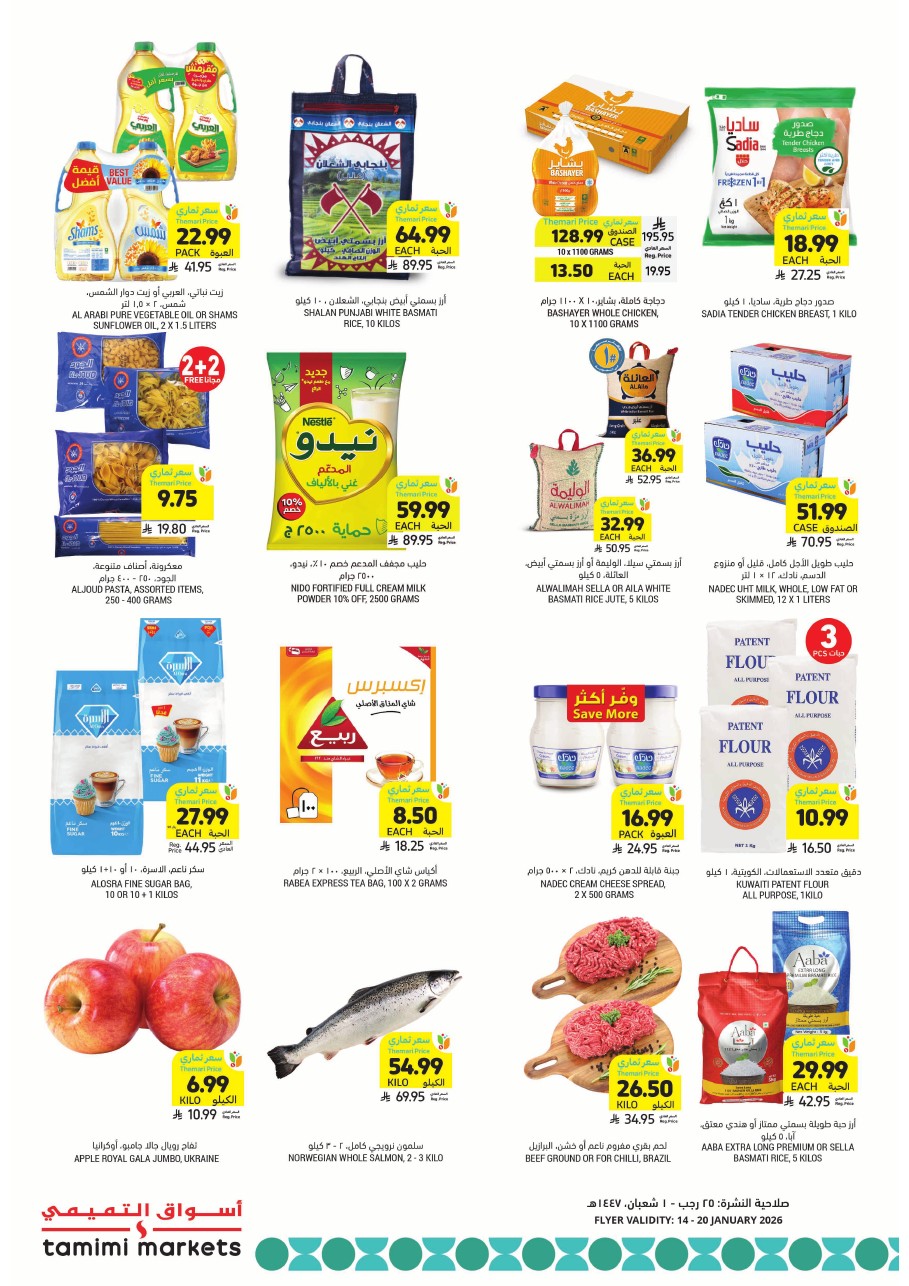 عروض التميمي المدينة المنورة الأسبوعية 14 يناير 2026 _ 25 رجب 1447 أساسيات رمضان بأسعار ترضيك كل اللي تحتاجه لشهر الخير بأقل الأسعار تبدأ سنة جديدة مليئة بالفرص… وفرص التوفير هذه المرة أكبر من أي وقت مضى! فصل الشتاء في أوجه، ومعه أطلقنا لك عروضًا قوية تساعدك تبدأ العام بأسلوب ذكي وميزانية أذكى.