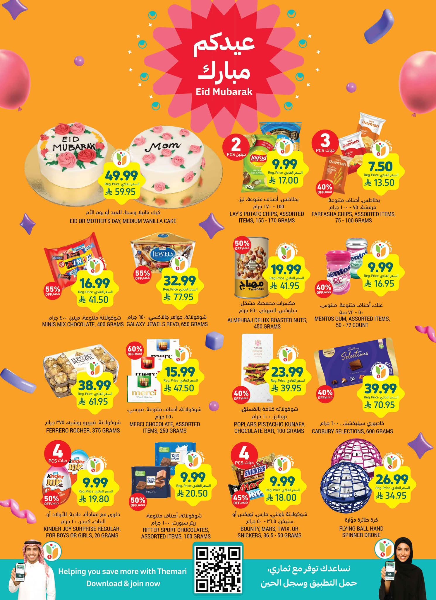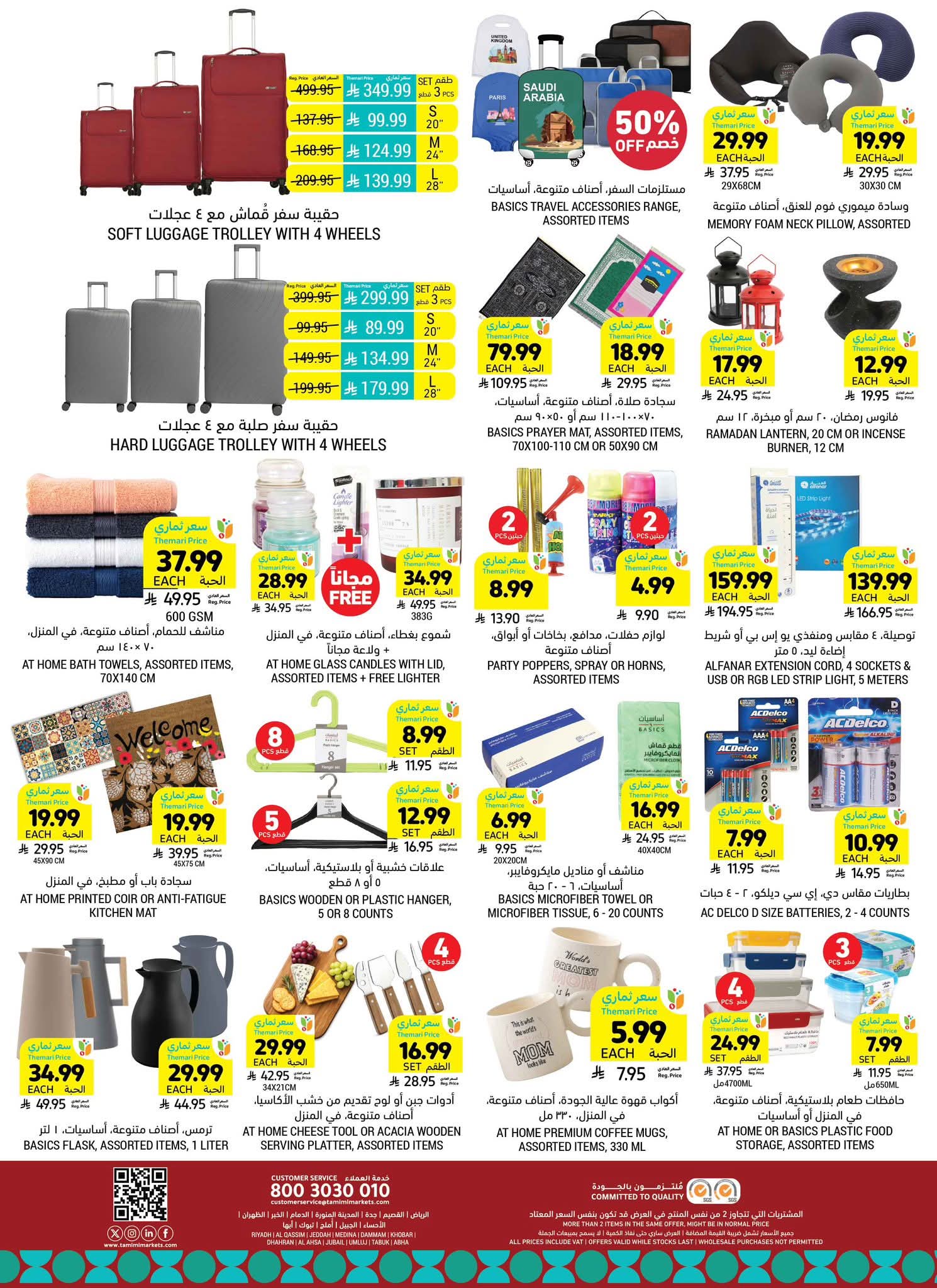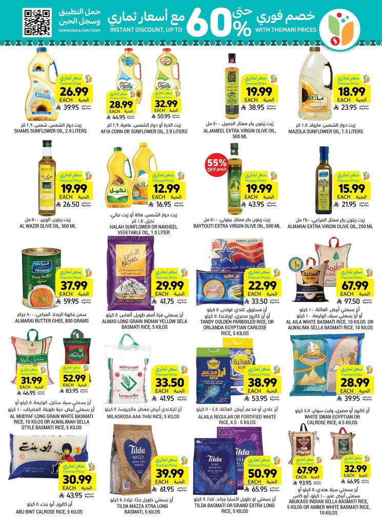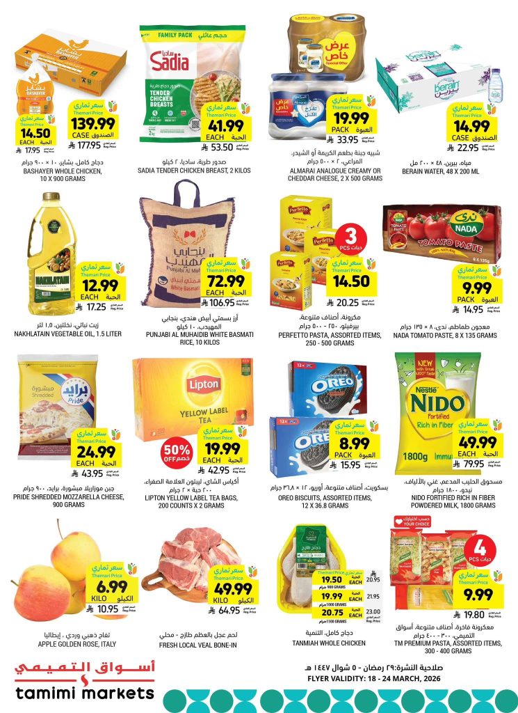 عروض التميمي المدينة المنورة بصفحة واحدة 18 مارس 2026 الموافق 29 رمضان 1447 فرحة العيد ، وفرحتنا ما تكمل إلا بتوفيركم! استعد لطبخات العيد وجهز مطبخك بأفضل الأسعار. سوينا لكم باقات توفيرية على المواد الأساسية (أرز، سكر، دقيق، معلبات) وأكثر من عروض على المواد الكهربائية وغيرها