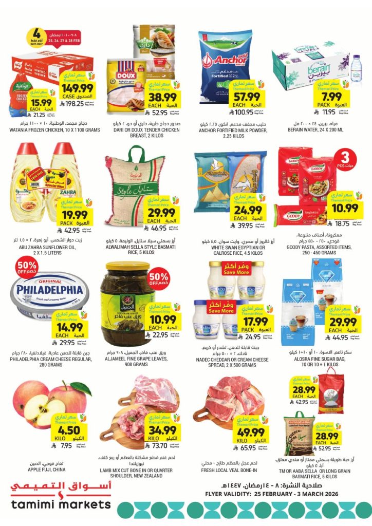 عروض التميمي حفر الباطن الاسبوعية 25 فبراير 2026 -8\9\1447 عروض شهر رمضان المبارك , استمتعوا بـ عروض رمضان المميزة على كل مستلزمات الشهر الفضيل! تخفيضات مذهلة على الأغذية والمشروبات والحلويات تجعل تسوقكم أسهل وأوفر.